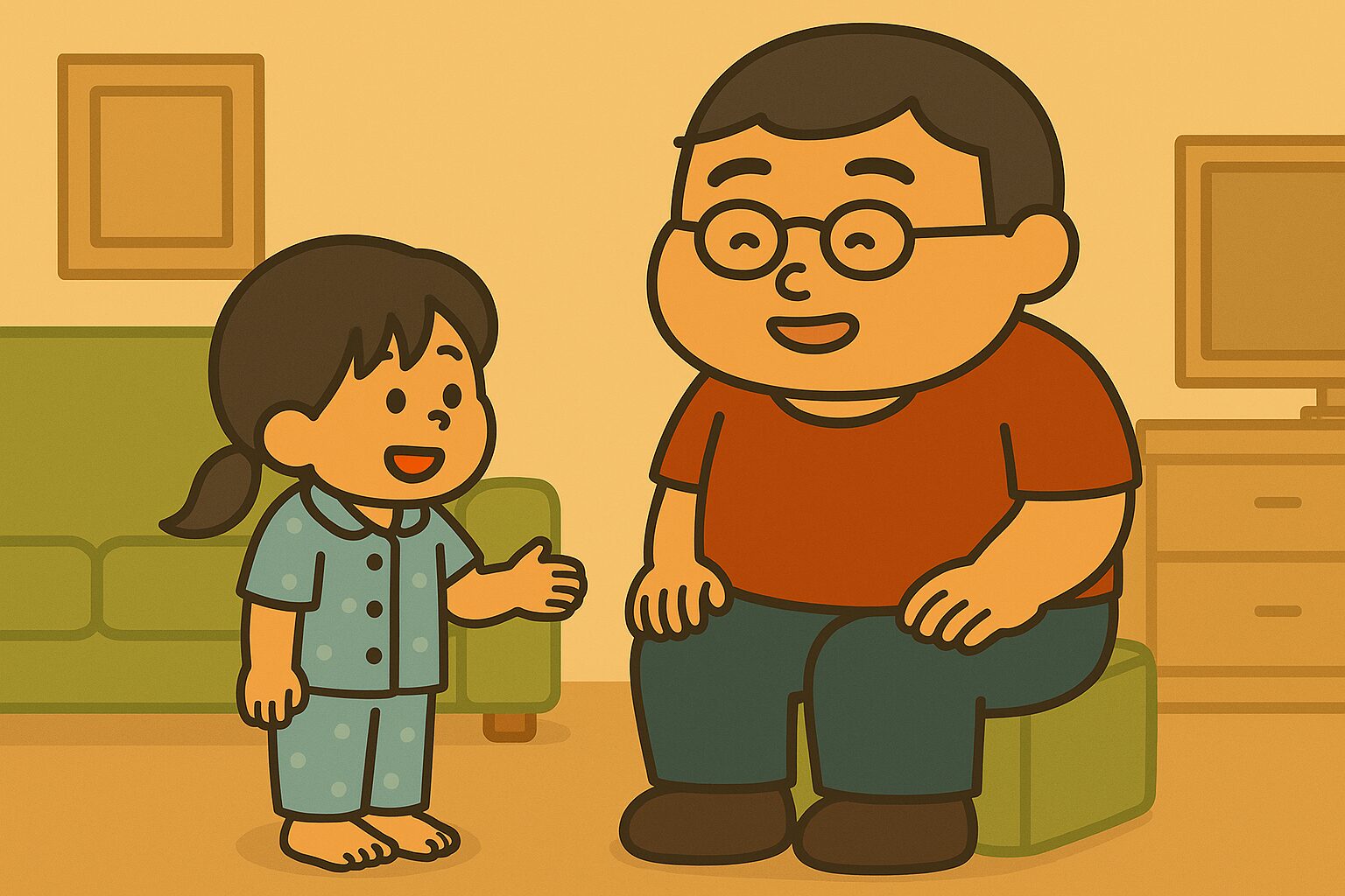 チャビーパパ日記「おやすみのひとことが、いちばんの癒し」(2025/10/11) 健康 2025.10.19 夜10時ごろ。もう寝たと思っていた娘が、リビングでYouTubeを見ている私のところにやってきて、こう言いました。 「パパ、まだ寝ないの?寝たほうがいいよ。いっしょに“おやすみなさい”したほうがいいよ。」 その優しい一言に、思わず笑顔になります。こんなふうに気づかってくれるようになったんだなぁ、としみじみ。 今日は、なんだか心があたたかくなる一日でした。