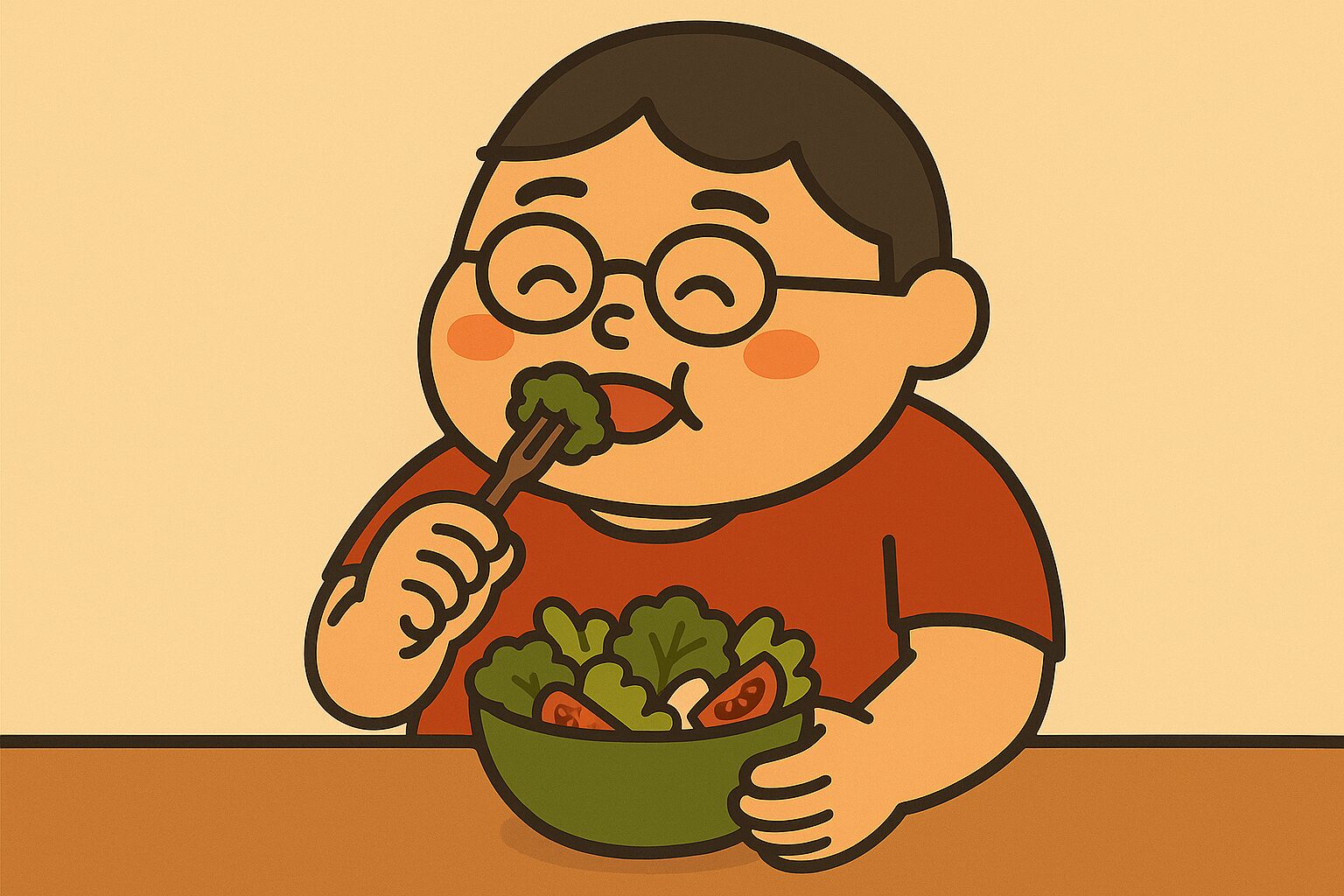 チャビーパパ日記「お腹がすいても日記は書く」(2025/10/16) 健康 2025.10.25 明日は健康診断。今夜の夕食は控えめに、野菜だけにしました。 お腹はすくけれど、体はなんだか軽くて快調。やっぱり食事の量を見直して、体重を落とさないといけませんね。 でも――お腹がすくと、日記を書くエネルギーが出ない気がする。 というわけで、今日はこのへんで。おやすみなさい。
