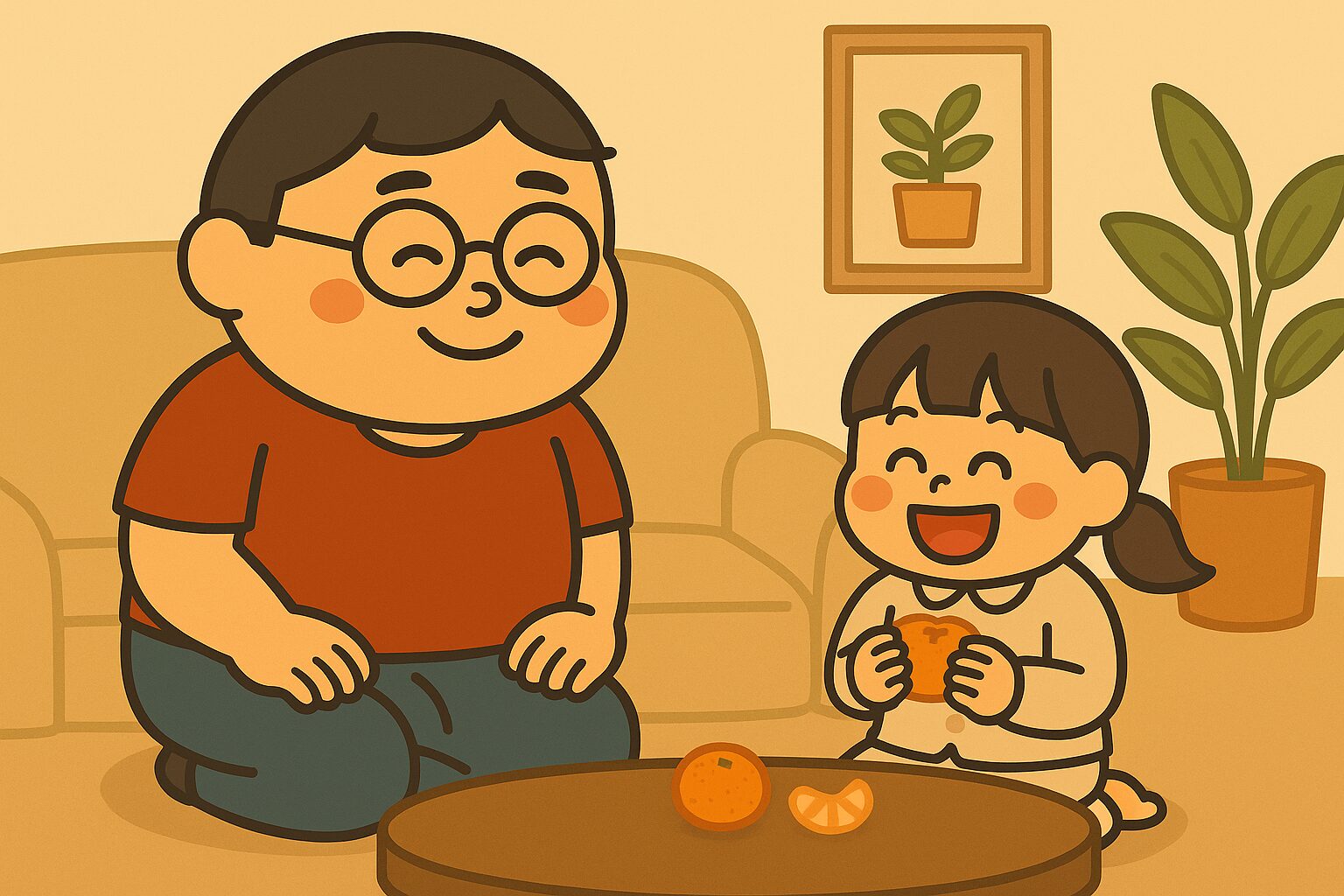 「パパ、ミカン食べる?」とお皿にのせて持ってきてくれました。