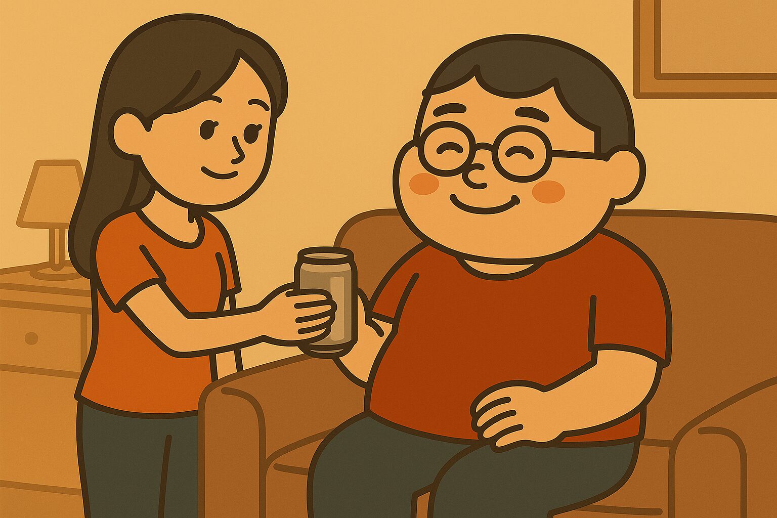 すかさず冷えた缶ビールを手渡してくれます。