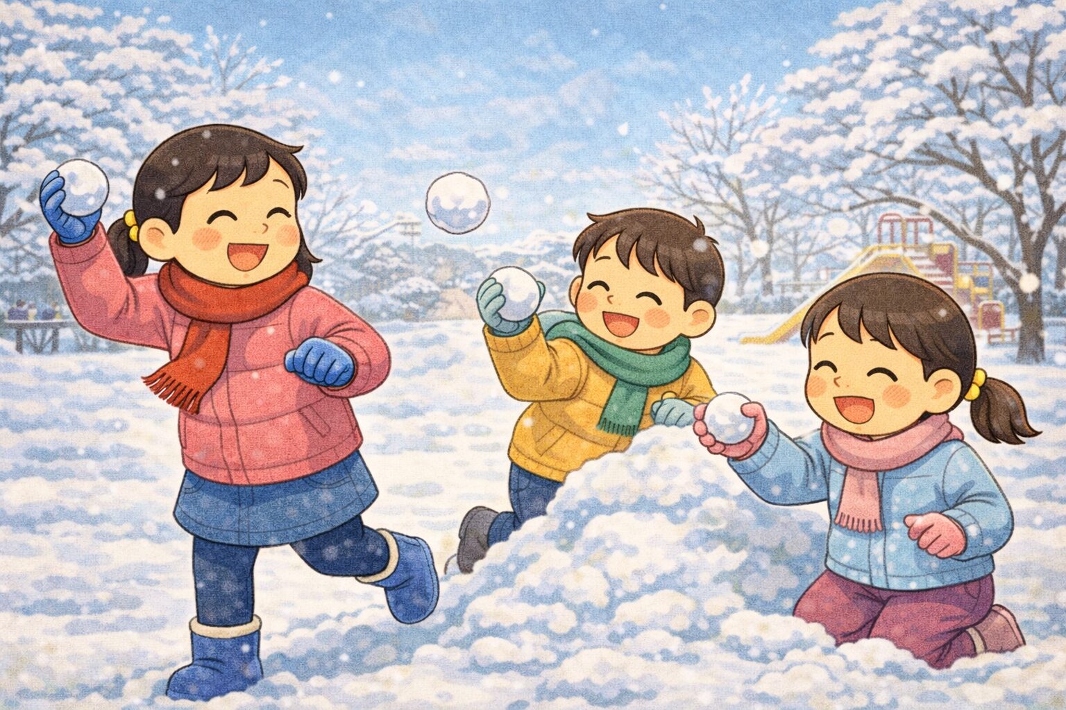 本当に楽しそうで、さっそく雪玉を作って私に投げてきました。